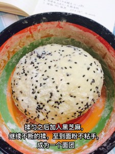 When everything mixed well, add in black sesames. And keep kneading until the dough becomes less sticky.