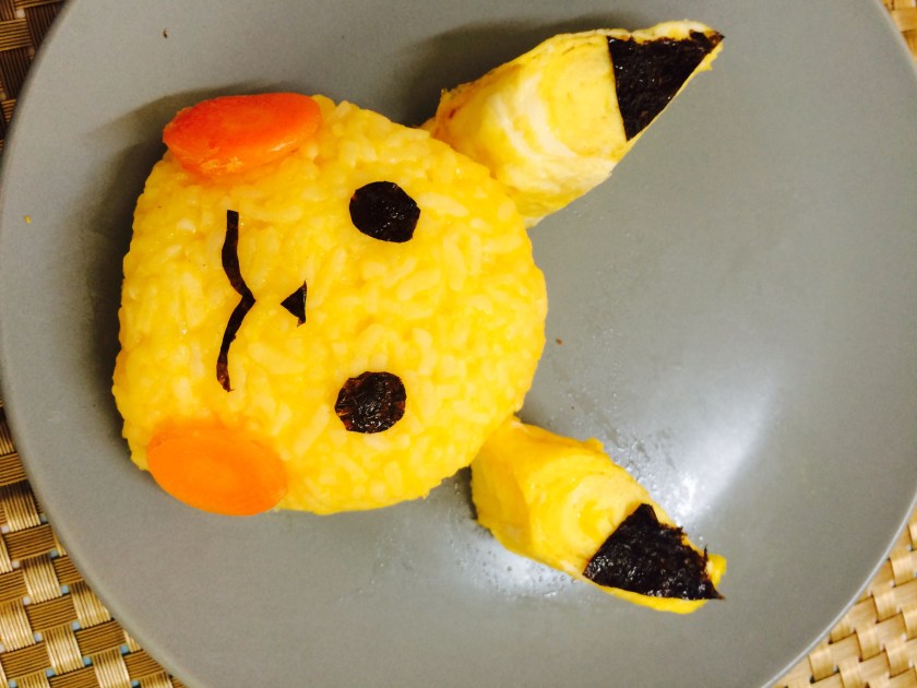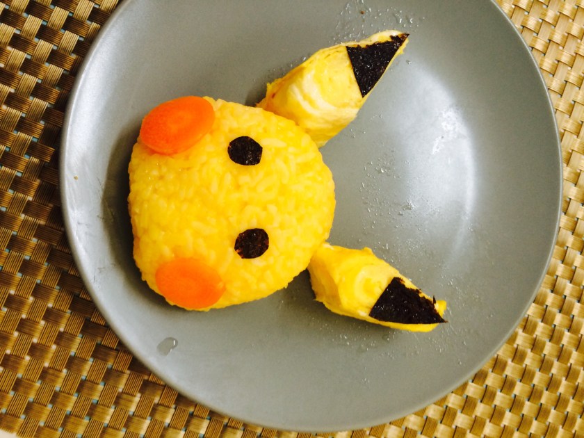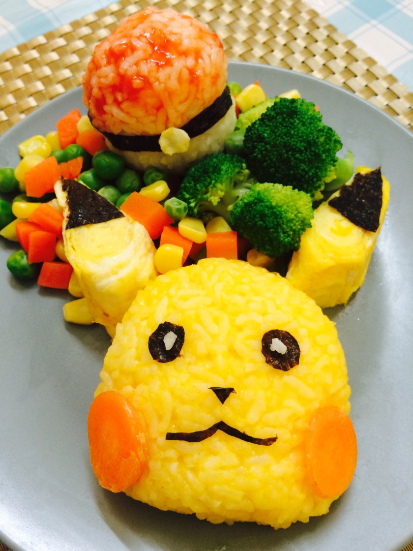 Add some vegetables you like. And a cute Pikachu meal is done.