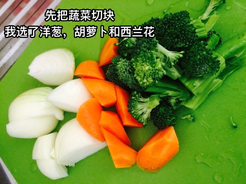 Cut the vegetables into medium pieces. I chose onion, carrot and broccoli.