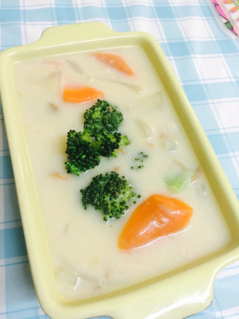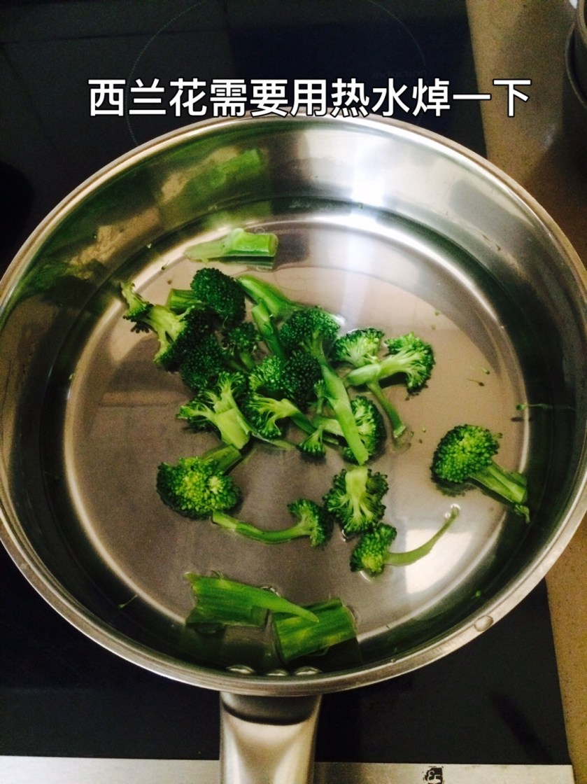 When cream is mixed well with water, and the soup becomes condensed, put in broccoli. Cook for another minute. Add a little salt and black pepper powder if you think it tastes a little plain.