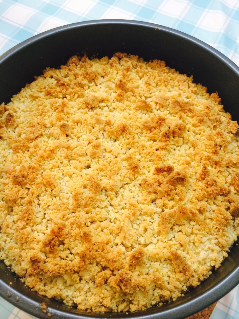 This is my first crumb cake. And It turned out to be a big success. I did a little change based on the original recipe.