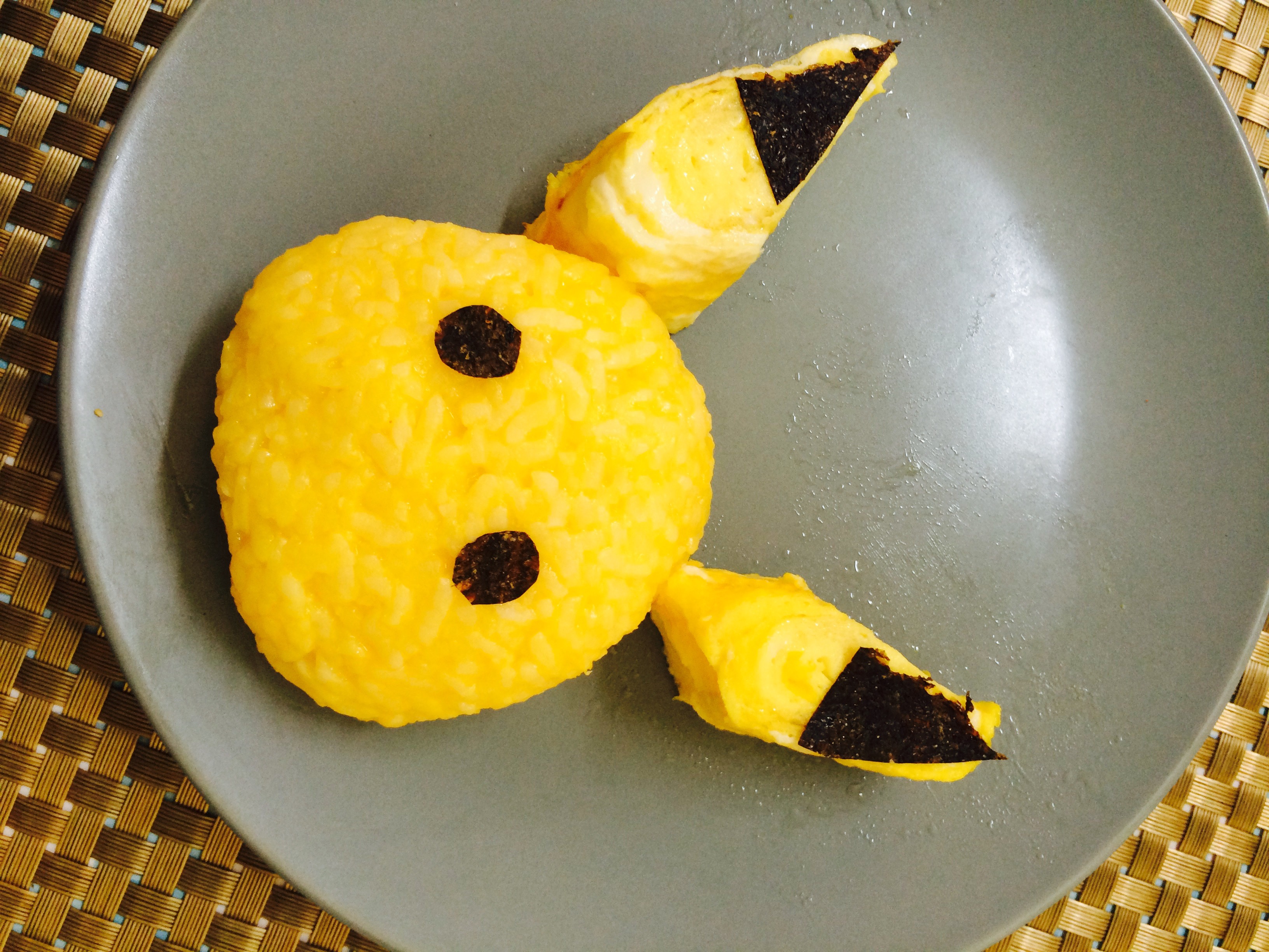 Make tamagoyaki with eggs. And cut them into the shape of Pikachu’s ears.