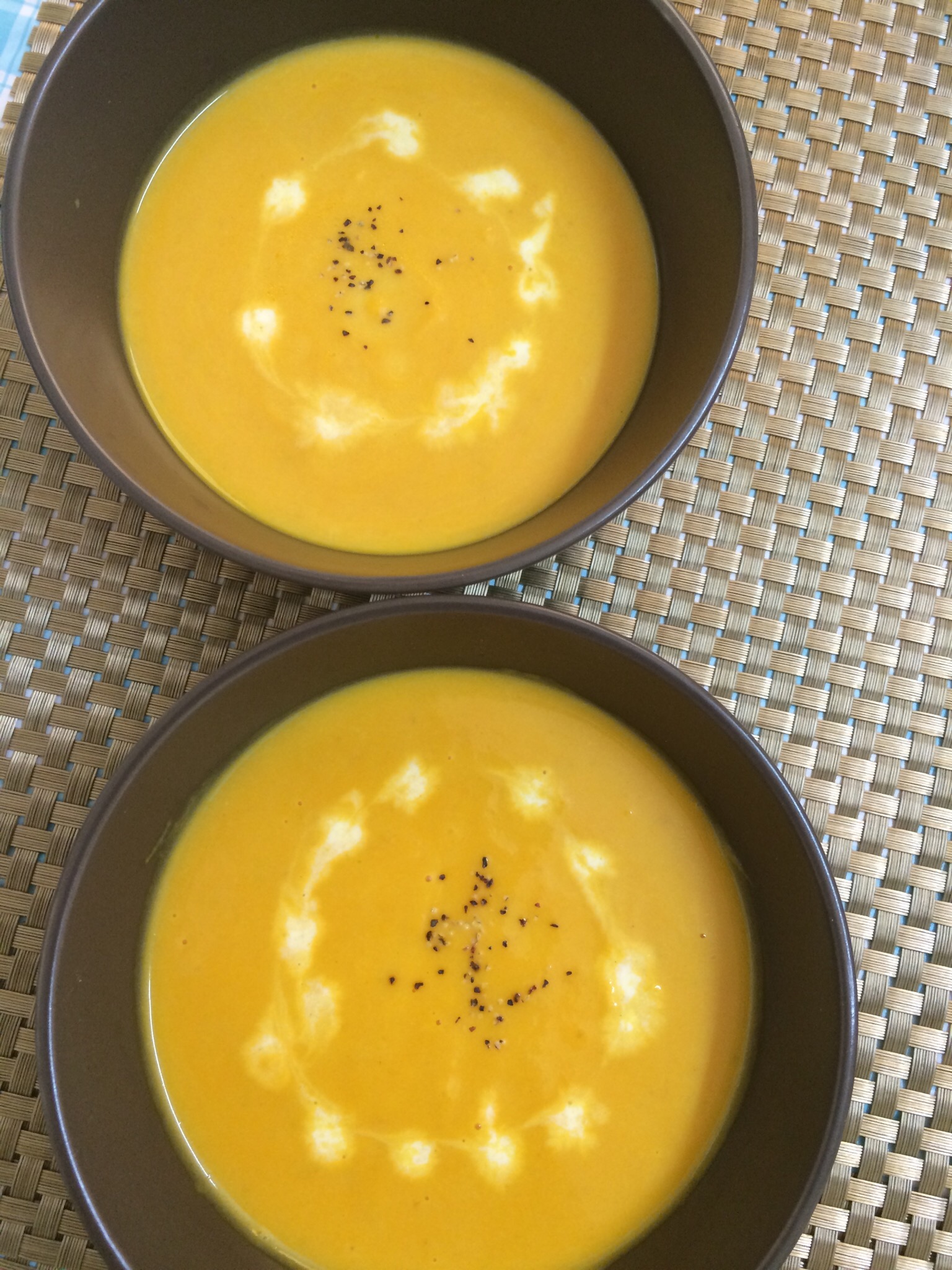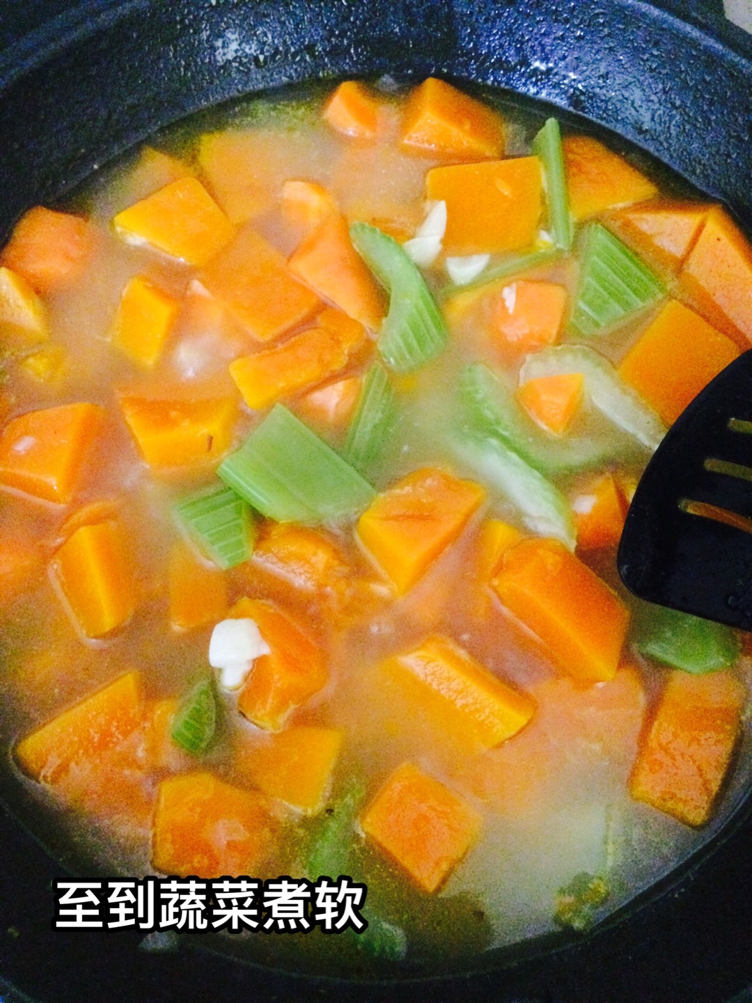 The soup tastes great. The pumpkin I used is kind of sweet. Carrot and celery make it healthier.