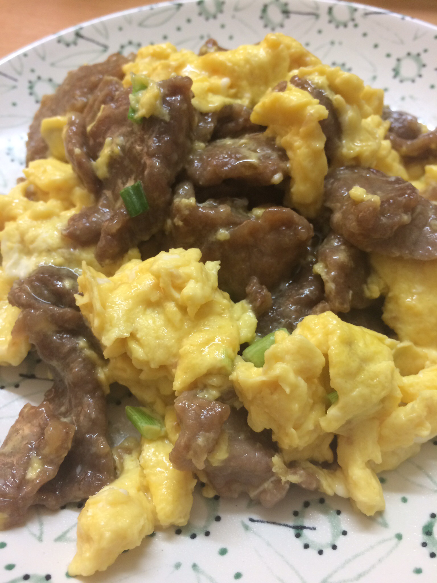 Recipe for fried beef with scrambled eggs: